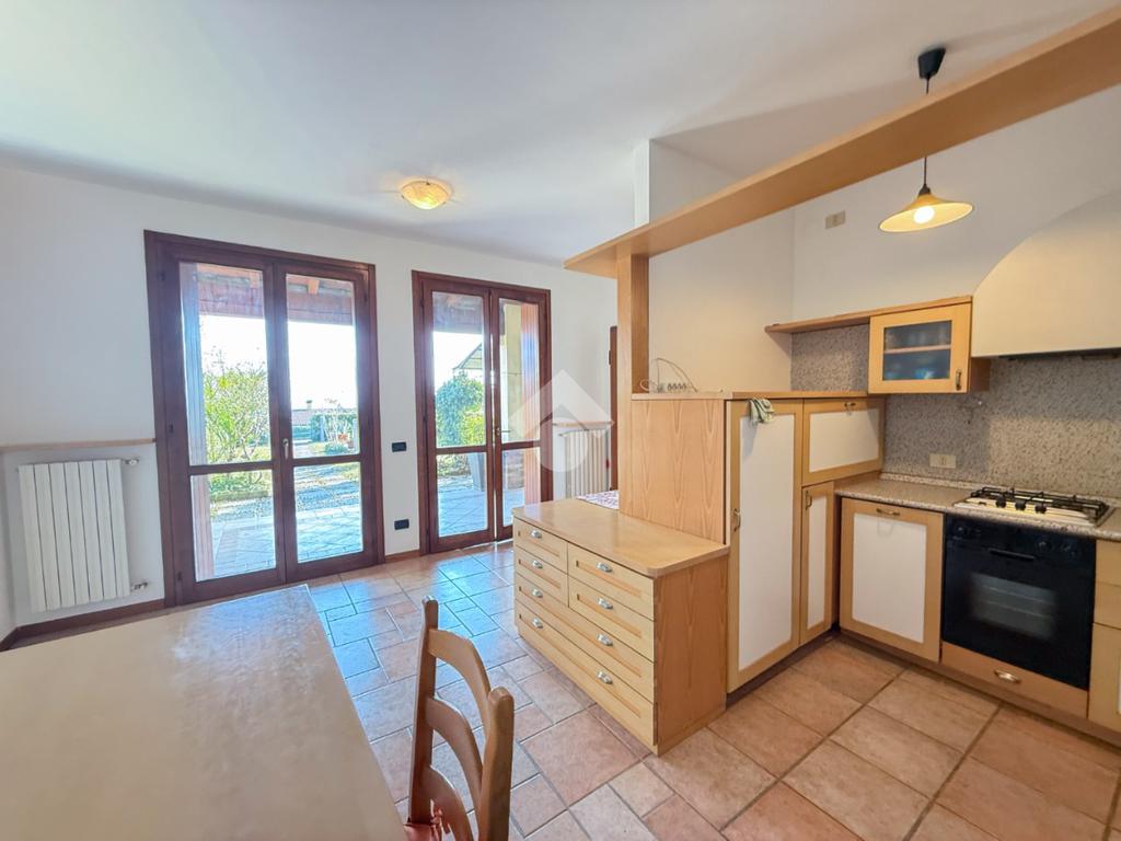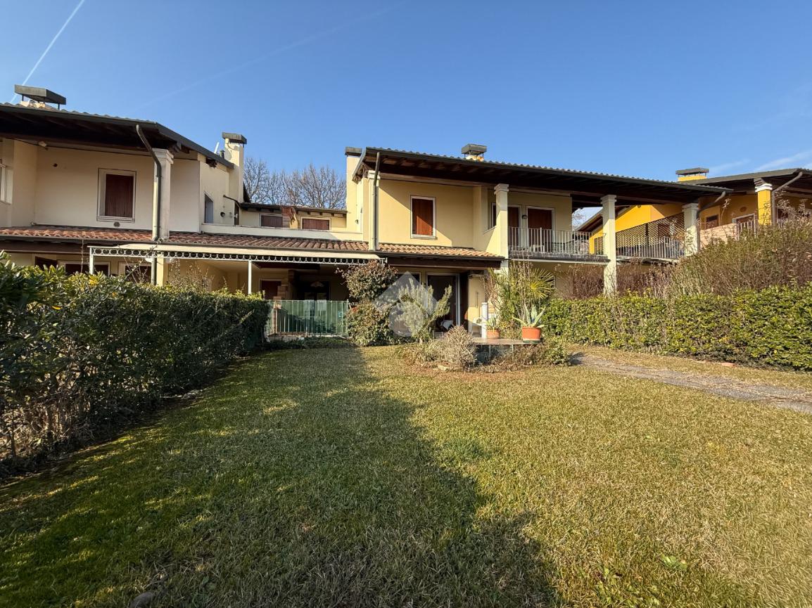 Al piano terra troviamo un accogliente soggiorno con zona cottura, due camere da letto, un bagno finestrato e un ampio portico con vista panoramica sul lago, che si affaccia direttamente sul giardino privato.Al piano interrato sono presenti una taverna, un secondo servizio, una comoda cantina e un box.