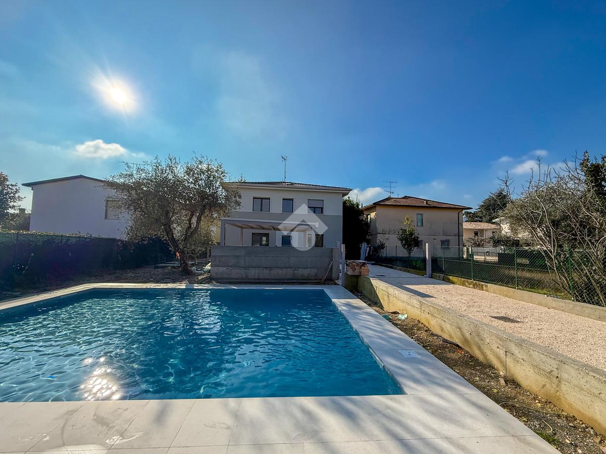 In a strategic location, conveniently close to both the historic center and the renowned beaches of Padenghe sul Garda, we offer for sale a prestigious first-floor portion of a semi-detached villa, set within an exclusive complex featuring a shared swimming pool with the lower unit.